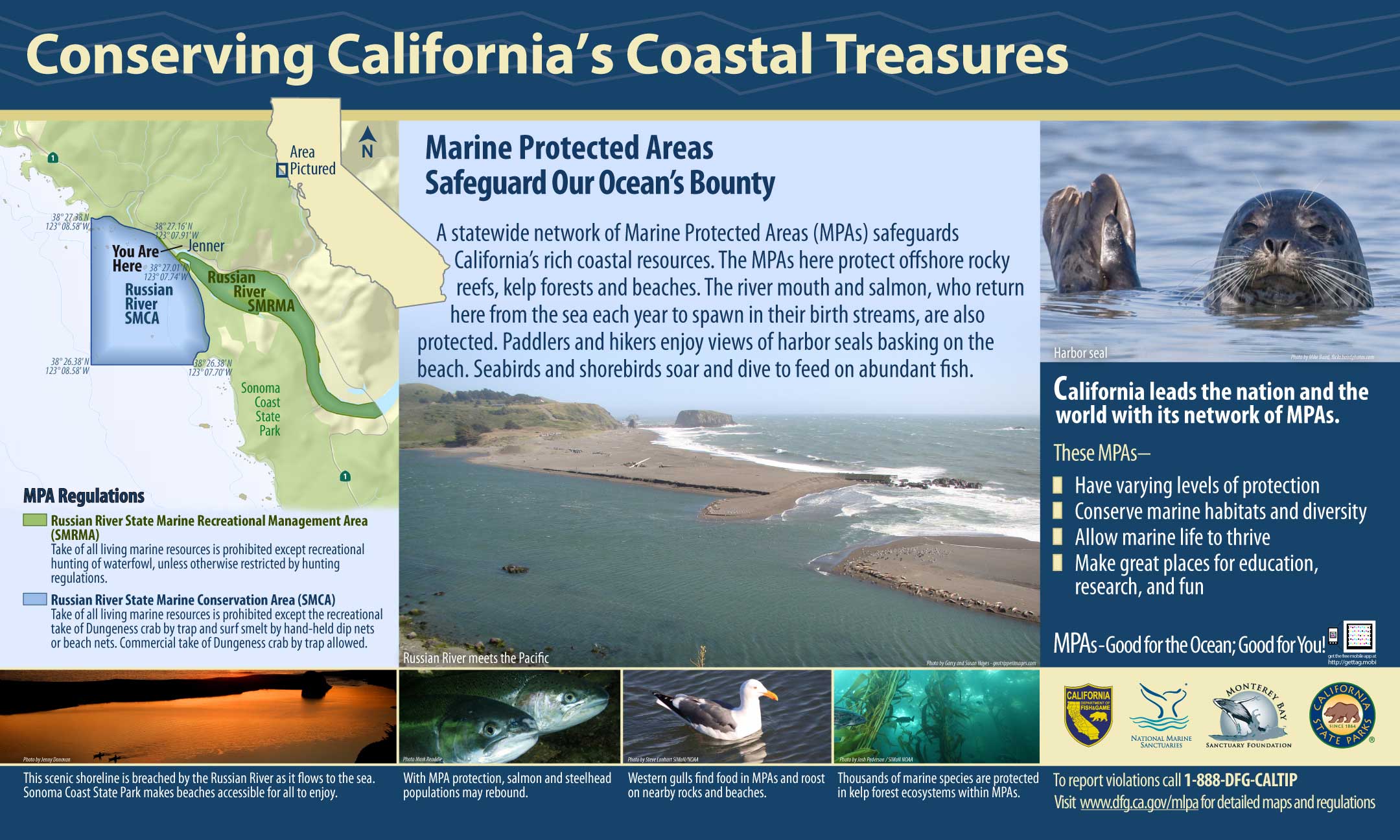 - Exploring California’s Marine Protected Areas: Russian River State Marine Recreational Management Area, and Russian River State Marine Conservation Area (CDFW)