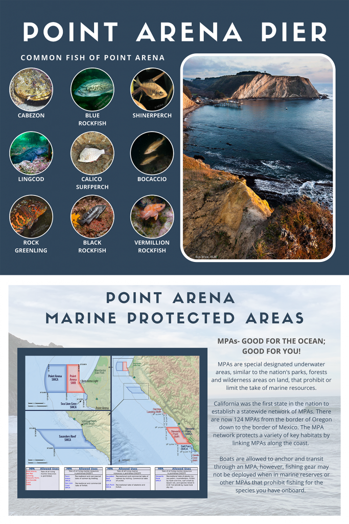This poster was developed for use at events held along the Point Arena Pier in Mendocino County.
