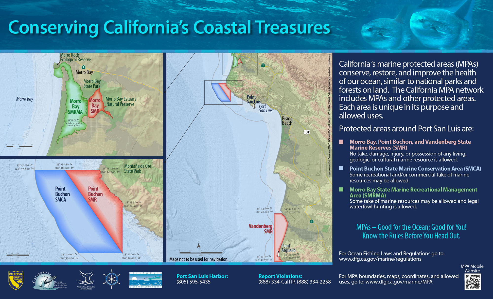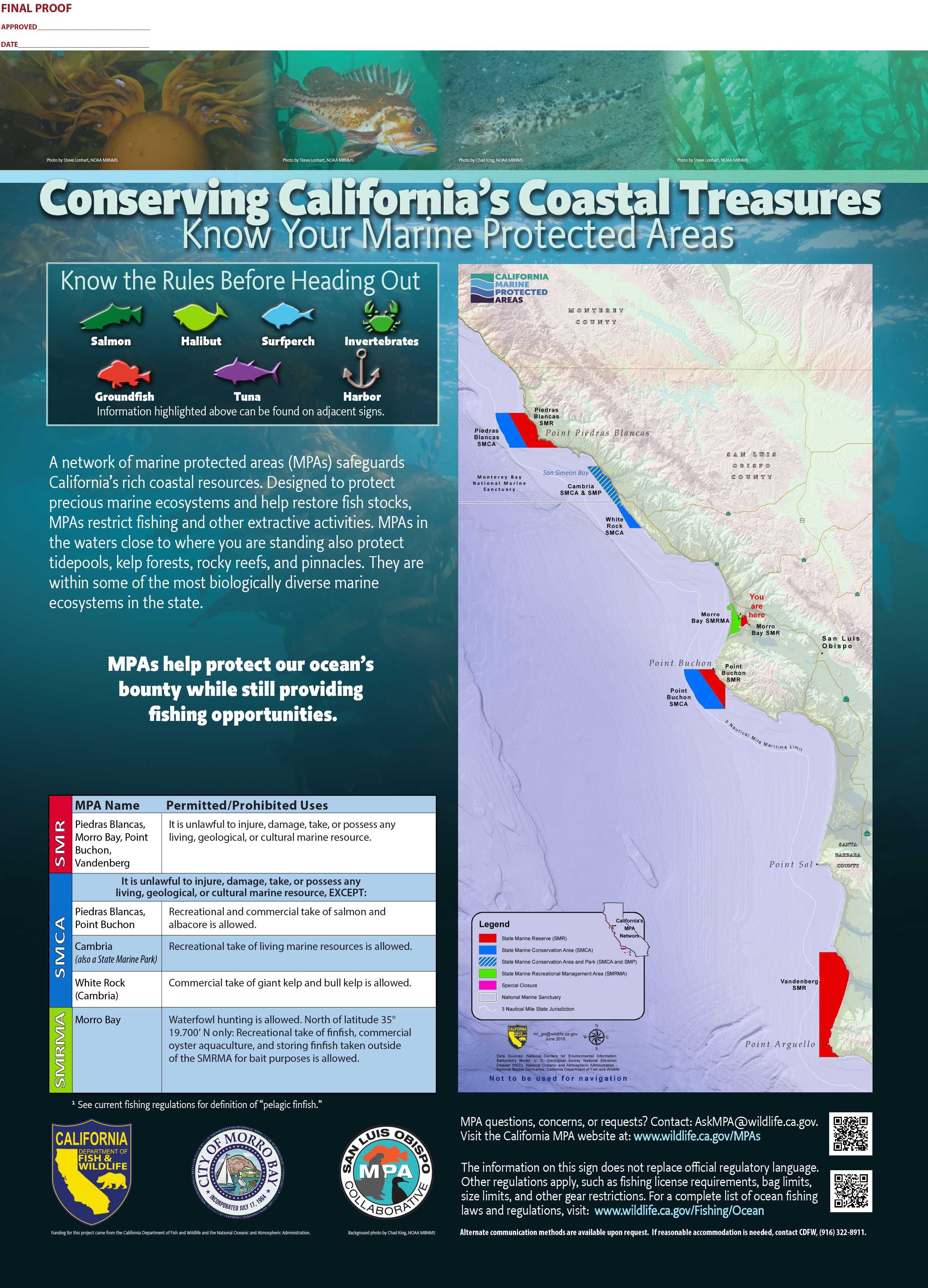 Originally created by Wildcoast, “You are Here” signs are designed to orient visitors to their location in relation to an MPA’s boundaries and to inform them about its take regulations.